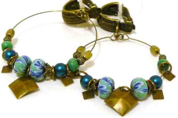 Aro clip colgante con argolla. Azul, rojo, verde, negro , natural, camel.