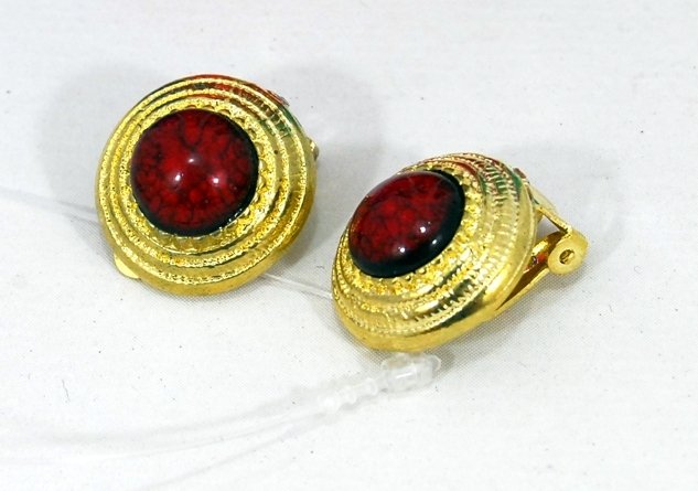 Aro clip dorado con media perla tomate