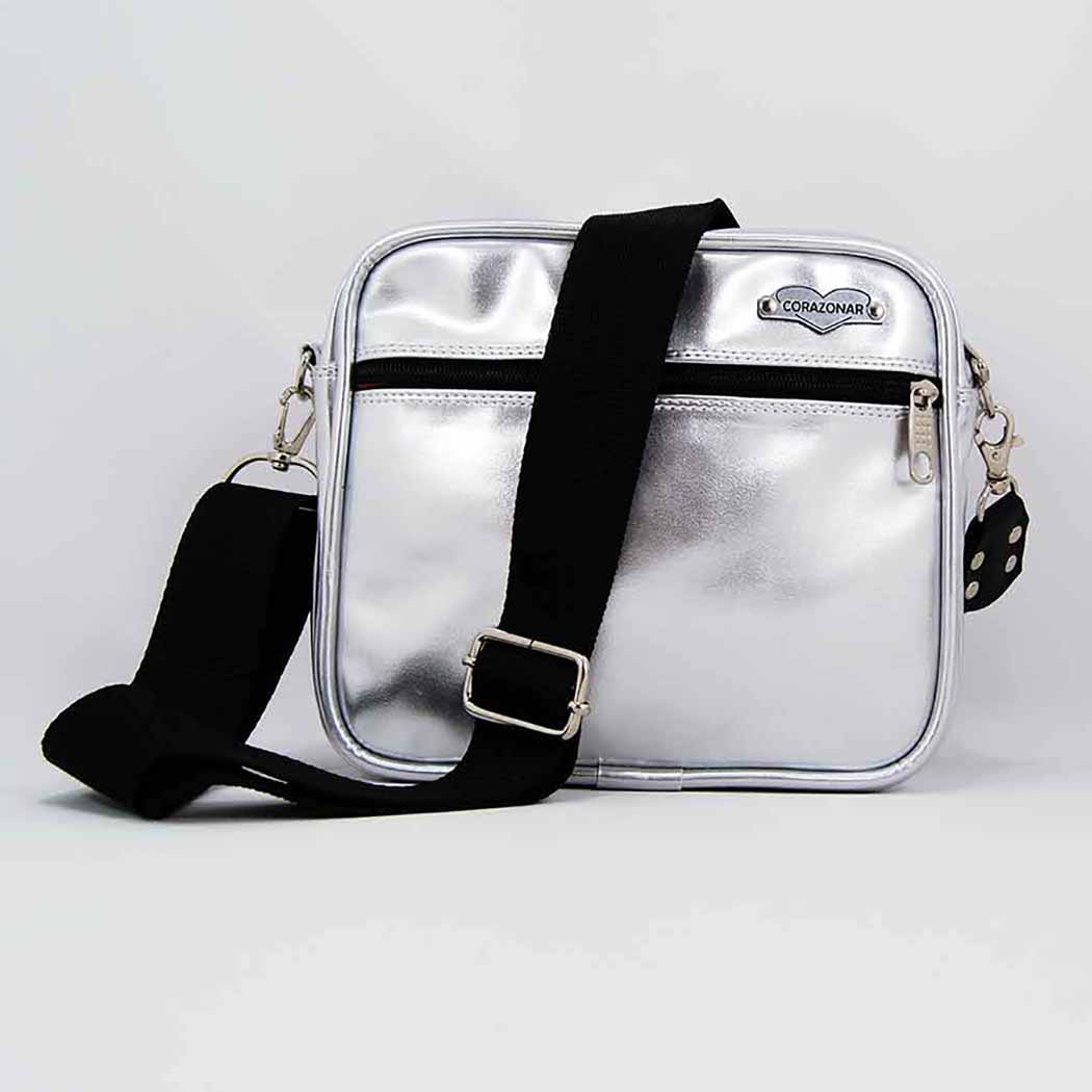 Bandolera de charol plateado – 22x18x7 – Marca CORAZONAR – Forrada