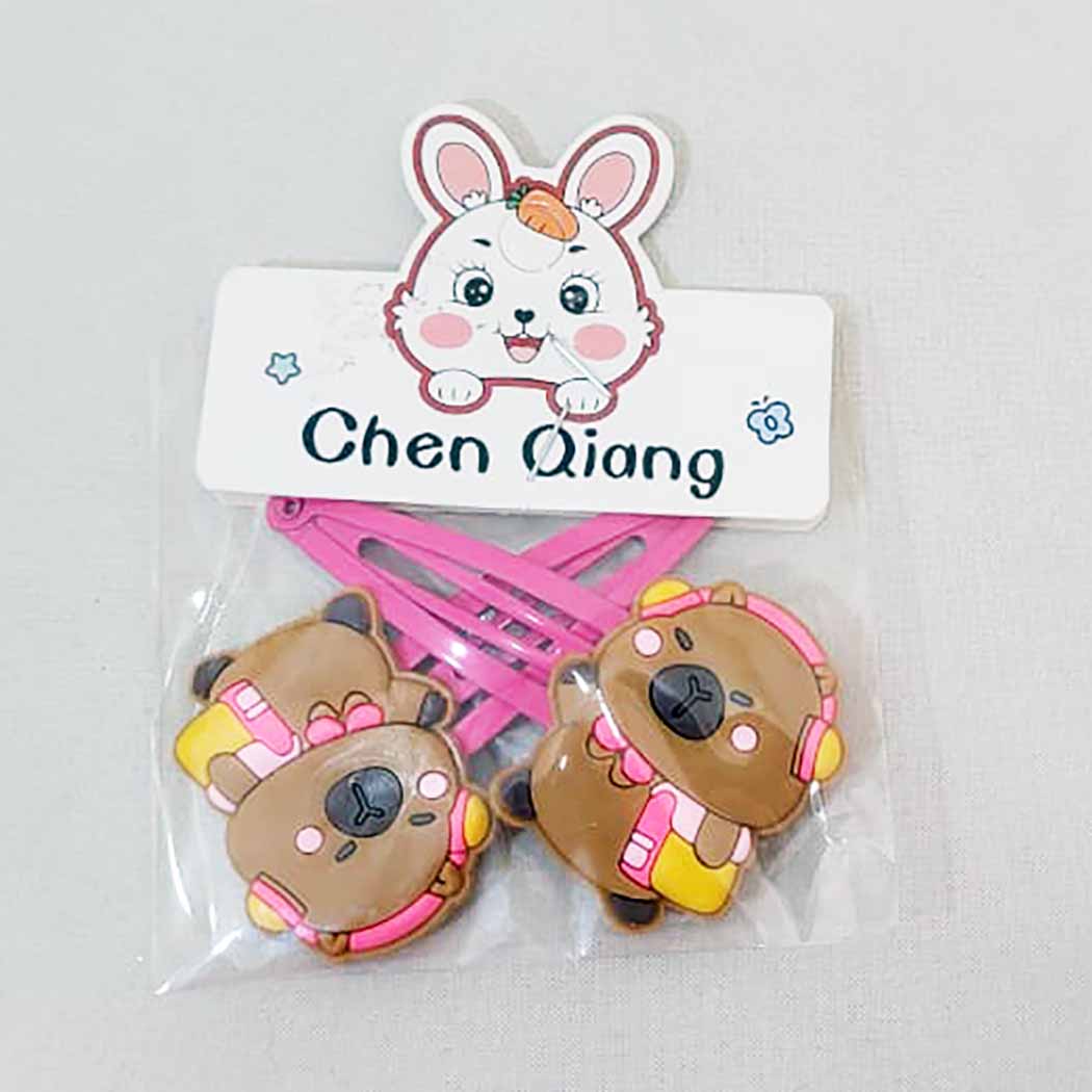 Los tic tac más tiernos y divertidos del momento. Hebillas metálicas tipo tic tac en color fucsia con diseños de capibaras, la última moda en accesorios infantiles.