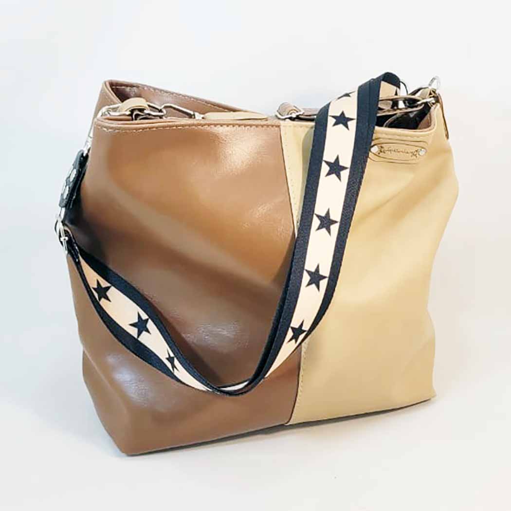 Bolso de cuero sintético 30x30x15 – Marca SETIEMBRE – Forrada – CAMEL Y CHOCOLATE