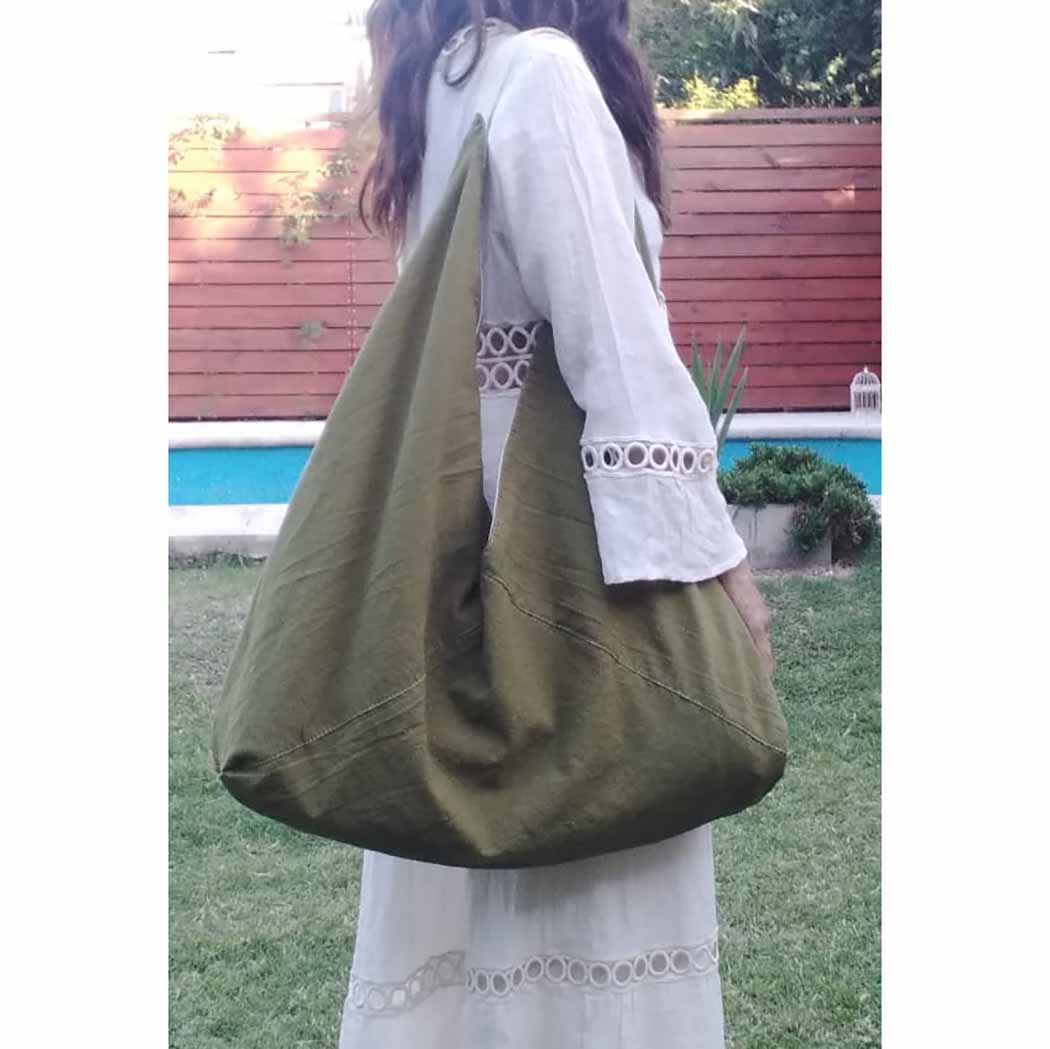 Bolso playero reversible – Marce Setiembre – VERDE MILITAR