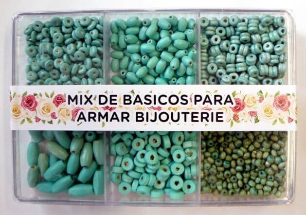 Caja acrílica con maderas – Surtido de formas – VERDE AGUA