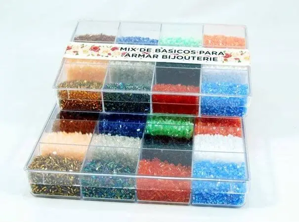 Caja de acrílico con 12 colores de canutillo partido para armado de bijou