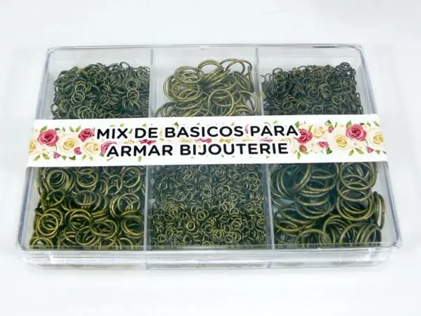 Caja de acrílico con insumos para armado de biju – Piezas níquel
