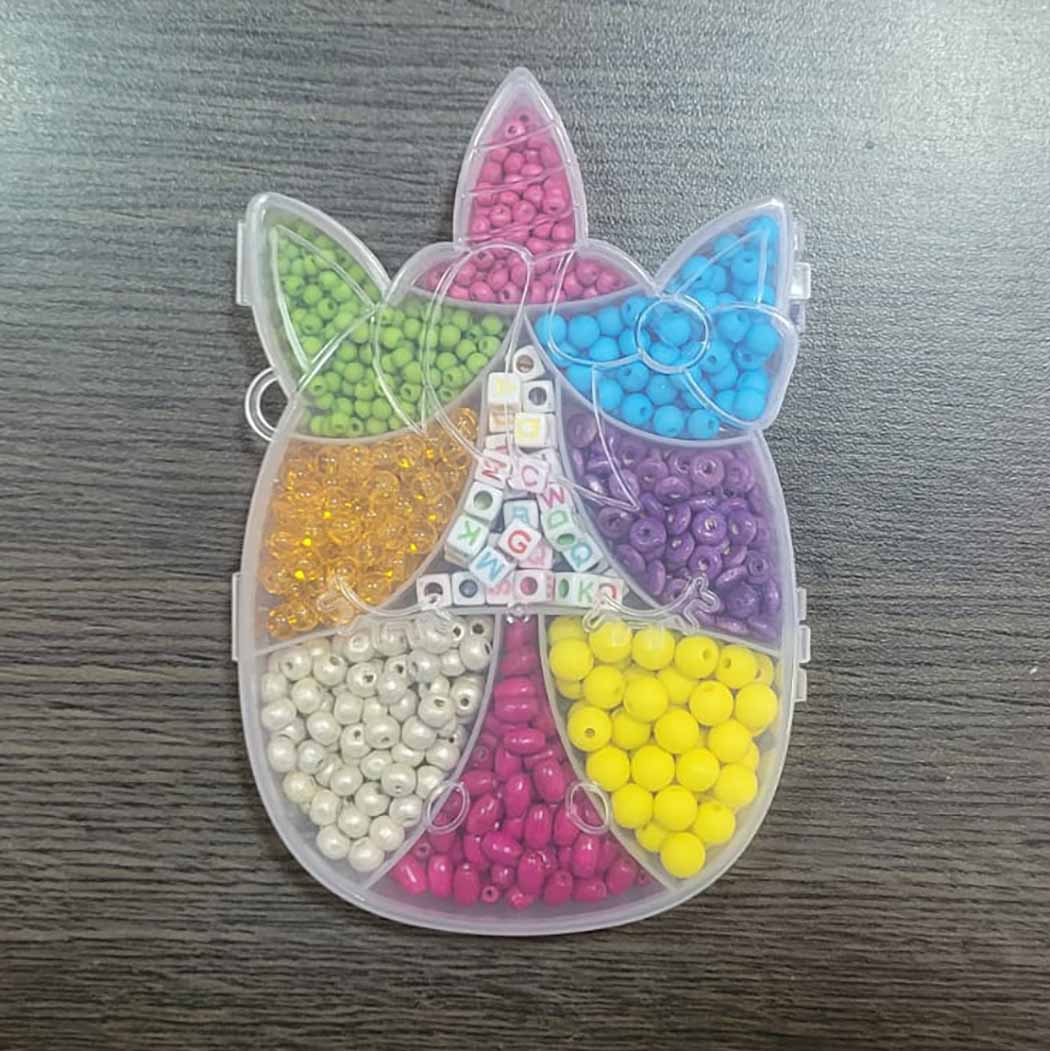 🎨 Kit de Mostacillas y Cuentas Plásticas – Caja UNICORNIO
